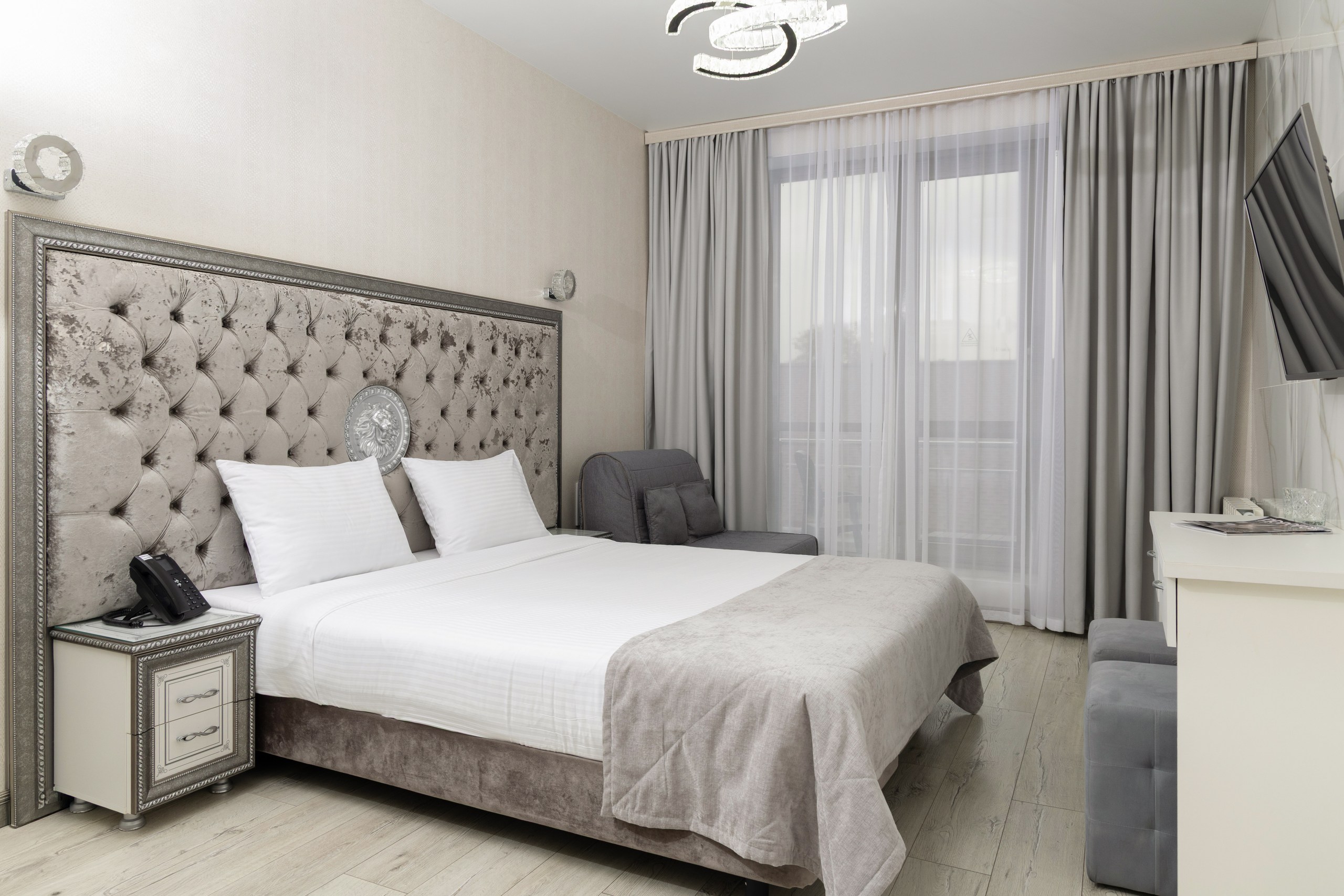 Номер состоит из спальной, ванной комнаты и балкона. В номере есть телевизор, электронный сейф, стол, пуфики и прикроватные тумбочки. Ванная комната с раковиной и ванной/душ, также имеются индивидуальные наборы косметических средств для гостей. Комфортную температуру обеспечивает сплит система кондиционирования.